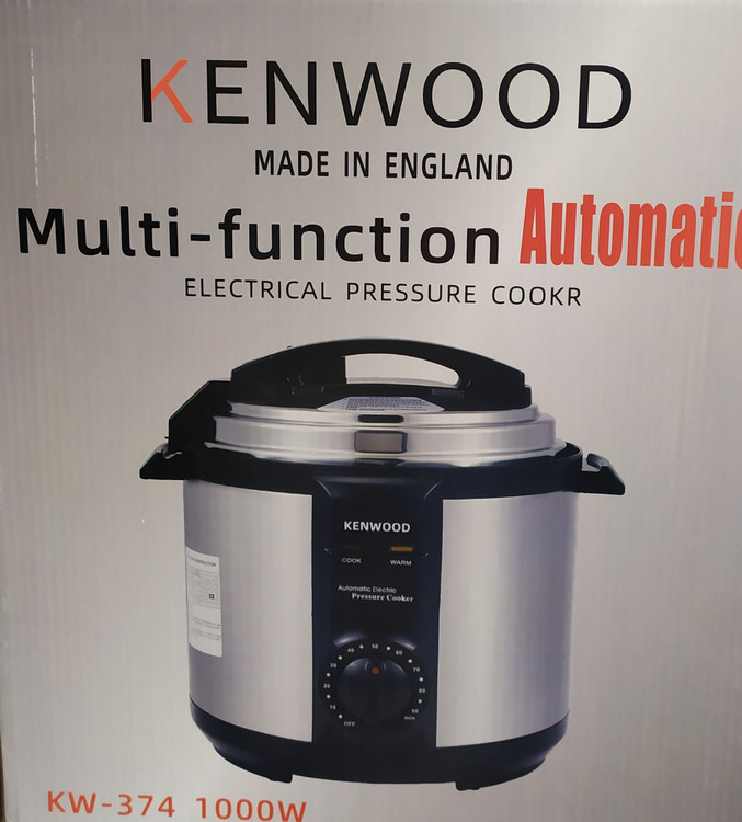 زودپز برقی کنوود مدل Kw-374 با توان 1000 وات امکان پخت انواع غذاها را در سریع ترین زمان ممکن فراهم می کند. جنس بدنه زودپز استیل ضد زنگ بوده که علاوه بر این که بر زیبایی ظاهری دستگاه افزوده است بسیار مقاوم و محکم می باشد و هم چنین به راحتی قابل تمیز شدن می باشد. ظرفیت 6 لیتری زودپر مناسب برای تهیه غذا برای 5 تا 8 نفر می باشد. زودپز جی پاس مجهز به دیگ پخت با روکش نچسب و با داوم می باشد که غذا به آن نمی چسبد و به راحتی می توان آن را شستشو نمود. این دیگ قابل جدا شدن از بدنه بوده و قابل شستشو در ماشین ظرفشویی نیز می باشد. با استفاده از دستگیره های عایق گرمای زودپز می توان آن را به سهولت جابجا نمود. با استفاده از دریچه خروج هوا که بر روی درب زودپز قرار دارد می توان میزان فشار داخل دیگ را تنظیم نمود. دکمه روشن/ خاموش دستگاه در قسمت پائینی بدنه واقع است که با زدن این دکمه زودپز روشن می شود. زودپز جی پاس مجهز به تایمر 60 دقیقه ای جهت حفظ فشار داخلی دیگ می باشد که با تنظیم آن می توان مدت زمان حفظ فشار داخل دیگ را تعیین نمود. جهت پخت غذا با زودپز برقی جی پاس ابتدا دو شاخه را به پریز برق بزنید. سپس کلید را در وضعیت روشن قرار دهید. در این حالت نشان گر power روشن می شود. دکمه انتخاب گر فشار را در جهت عقربه ساعت بپیچانید و مدت زمان حفظ فشار مورد نظر را انتخاب کنید. نشان گر دماHeating روشن می شود. زودپز شروع به گرم شدن کرده و فشار داخل آن بالا می رود. همزمان با بالا رفتن دمای داخل زودپز سوپاپ ایمنی درب بالا آمده و درب زود پز قفل میگردد و تا خالی نشدن کامل بخار درب آن باز نمی شود. وقتی مدت زمان حفظ فشار به اتمام رسید زودپز به صورت خودکار به حالت گرم نگه داشتنkeep warm می رود. نشان گر گرم نگه داشتن روشن می شود. حال می توانید تنظیم کننده فشار را بچرخانید و در وضعیت تخلیهvent قرار دهید. زودپز شروع به تخلیه فشار می کند. وقتی فشار به اندازه کافی خارج شد زودپز دیگر سوت نمی زند. دسته درب زودپز را نگه داشته و آن را در خلاف جهت عقربه ساعت بچرخانید تا درب ثابت شود و دیگر حرکت نکند، سپس درب را بردارید. این زود پز طعم طبیعی غذا را حفظ کرده مانع هدر رفتن ویتامین های موحود در غذا می شود.