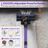 با قدرت مکش 25000 Pa و دو حالت مکش استاندارد و حداکثر، این جاروبرقی بیسیم قادر است تا 50 دقیقه بدون توقف کار کند و سطحی حدود 200 متر مربع را پوشش دهد.