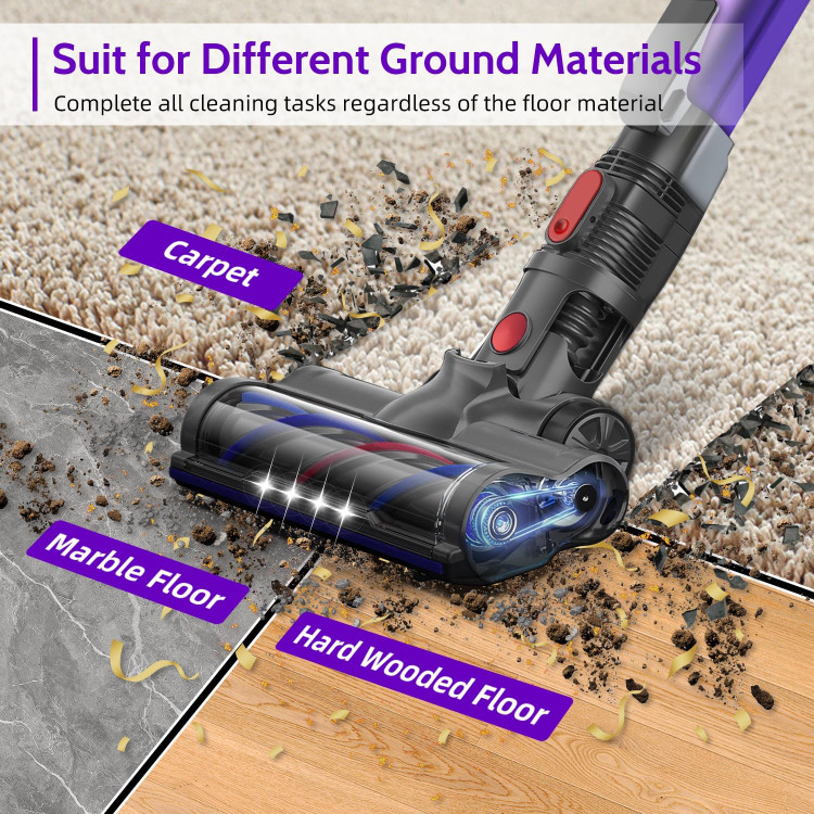2. اگر جاروبرقی بی سیم قدرت مکش خود را از دست داده است، ابتدا بررسی کنید که آیا برس کف و میله تلسکوپی مسدود نشده است یا خیر. (این جارو شارژی عملکرد حفاظتی خاص خود را دارد. هنگامی که برس کف مسدود می شود، چراغ LED به طور خودکار خاموش می شود تا از گرم شدن بیش از حد موتور جلوگیری شود، موتور متوقف می شود و جاروبرقی از کار می افتد.