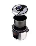 تایمر موجود در این زودپز قابلیت این را دارد که زمان مورد نظر برای پخت هر غذا را تنظیم کنید و با اتمام زمان پخت غذا را متوقف کند. همچنین میتوانید ساعت مورد نظر برای شروع پخت غذا را از قبل تعیین کنید تا زودپز در ساعت مشخص شروع به کار کند.
