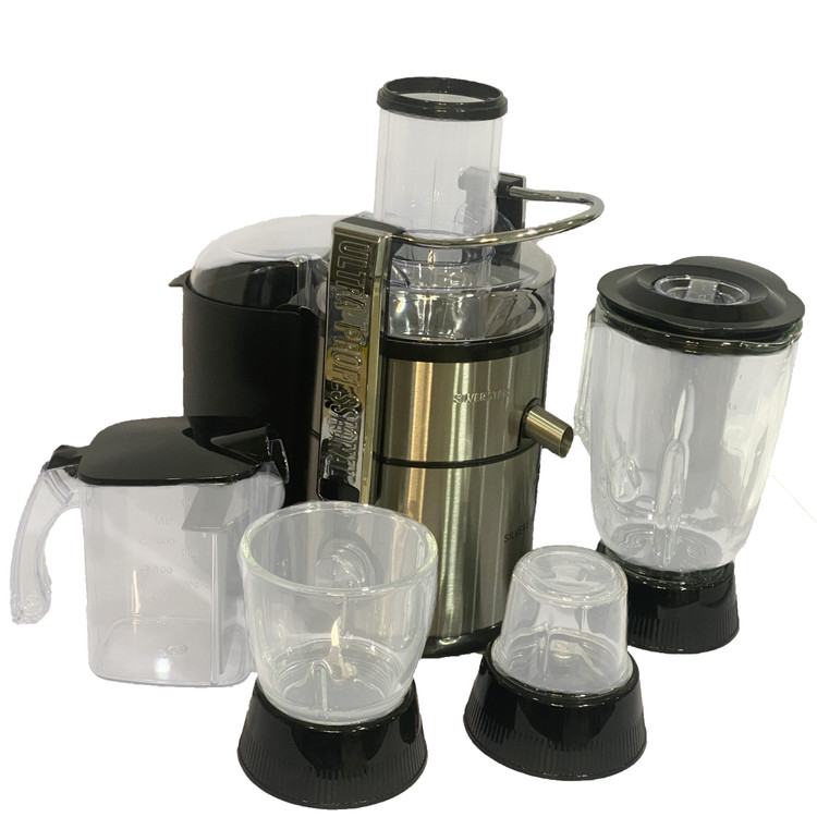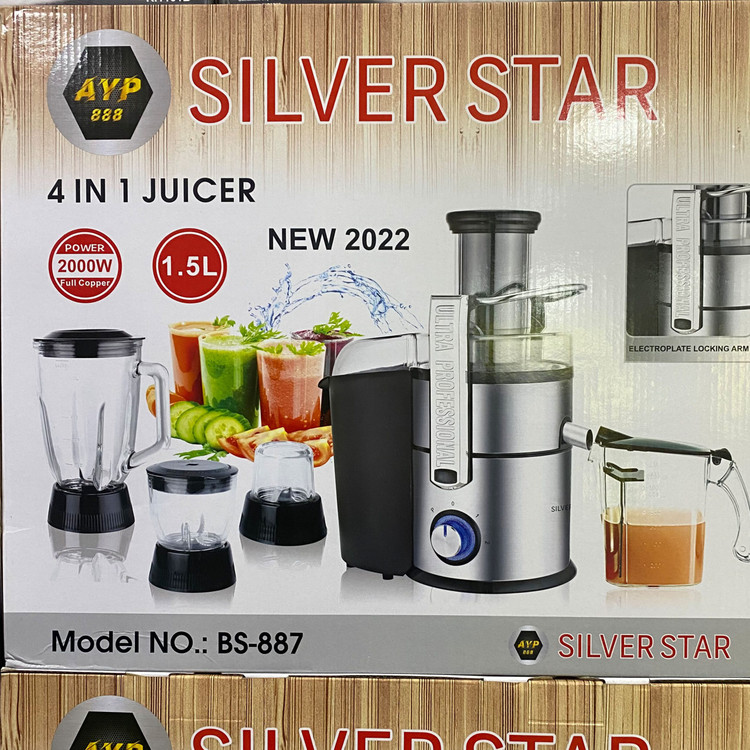 آبمیوه گیر چهار کاره SILVER SRAR یک محصول با طراحی بسیار زیبا، کیفیت ساخت بالا، موتور بسیار قدرتمند و قیمت مقرونبهصرفه است. این آبمیوه گیری در حالت چهار کاره ( دارای خرد کن ، آسیاب ، مخلوط کن شیشه پیرکس ) با بدنهی استیل، مخزن تفاله و تیغهی استیل ضدزنگ ساختهشده است. از دیگر مشخصات این محصول میتوان به قابلیت تنظیم سرعت به دو حالت، فنآوری ضد چکه، فیلتر قابل شستشو، قابلیت شستشوی لوازم جانبی در ماشین ظرفشویی، دارای دهانه ضدزنگ و بدنهی یکپارچه استیل اشاره کرد شما با خرید یک محصول 4 محصول خریده اید یا اینجوری بگم یک تیر و چهار نشان