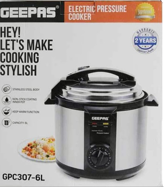 زودپز برقی ۴ کاره جی پاس مدل GPC307-6L یکی از محصولات کاربردی و با کیفیتی است، که وجودش در هر آشپزخانهای ضروری به نظر میرسد. زودپز چند کاره Geepas قابلیتها و کاربردهای متنوعی دارد، ولی مهمترین آن قابلیت زودپز کردن مواد غذایی مختلف است، که زمان و سرعت عمل بالا را به شما هدیه میبخشد. این زودپز برای تهیه برنج، پختن لوبیا و نخود و …، پختن گوشت و مرغ، پختن سوپ و پختن فرنی و آبگوشت استفاده میشود. با توجه به این همه کارآیی نمیتوان از داشتن این وسیله در آشپزخانه خود صرف نظر کرد. توان مصرفی در نظر گرفته برای این زودپز 1000 وات بوده، که نشان از قدرت و سرعت بالای آن دارد. مجهز بودن به ترموستات و فیوز حرارتی از داغ شدن و حرارت بالای دستگاه جلوگیری خواهد کرد و مانع از سوختن آن میشود.