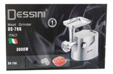 چرخ گوشت دسینی 3000 وات مدل Dessini DS-766 محصولی باکیفیت و بسیار قدرتمند است. که از نگارگری زیرکانه ای بهره مند است. این چرخگوشت توان بالایی داره و میتواند مقدار زیادی گوشت را چرخ کرده و تحویل دهد. این استعداد به خاطر بهرهگیری از تیغهی برنده از جنس فولاد ضدزنگ است که جلوی مارپیچ دستگاه نصب میشود.